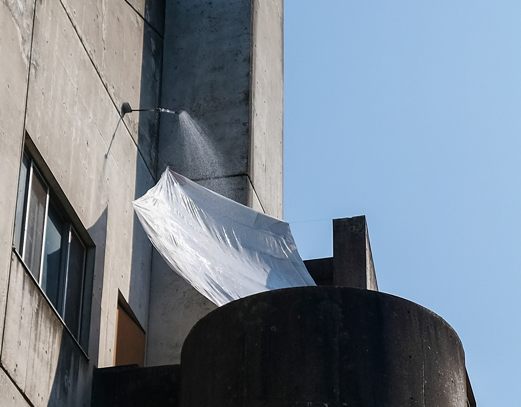 Mixed media, installation, latex, gauze, thermochromic ink, water pump,